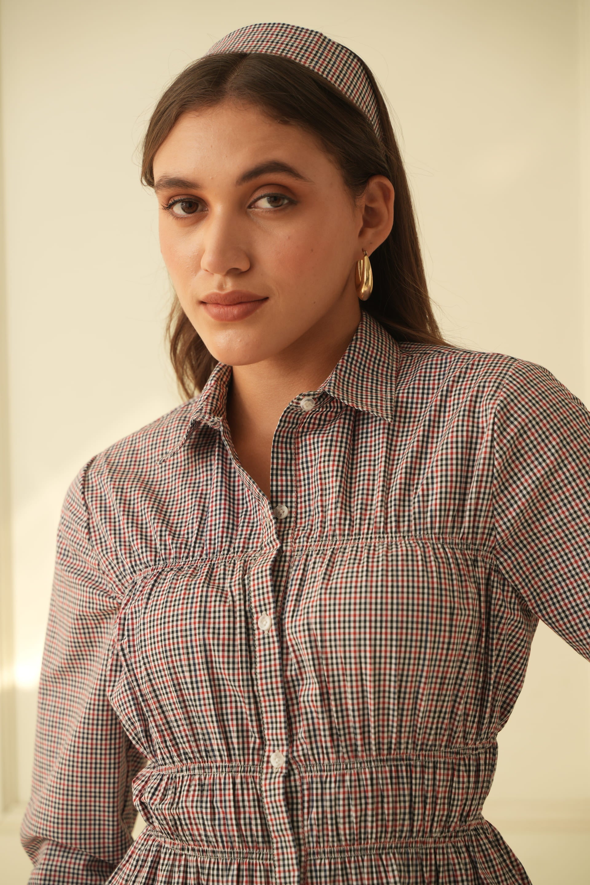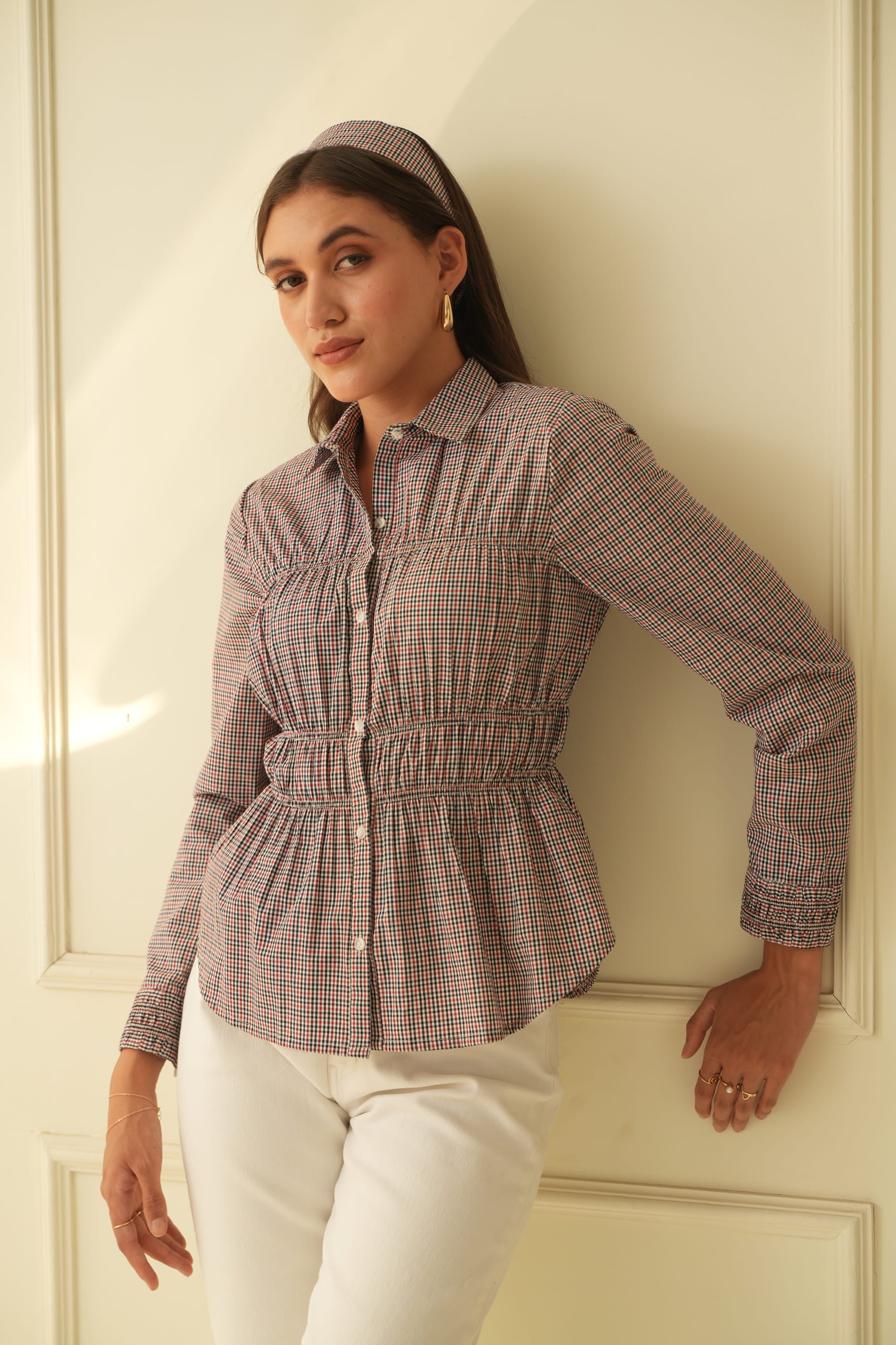 Adele Multicheck Scrunched Shirt