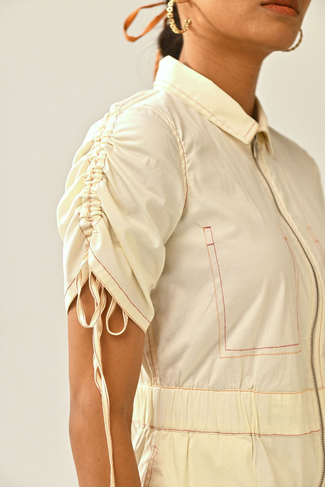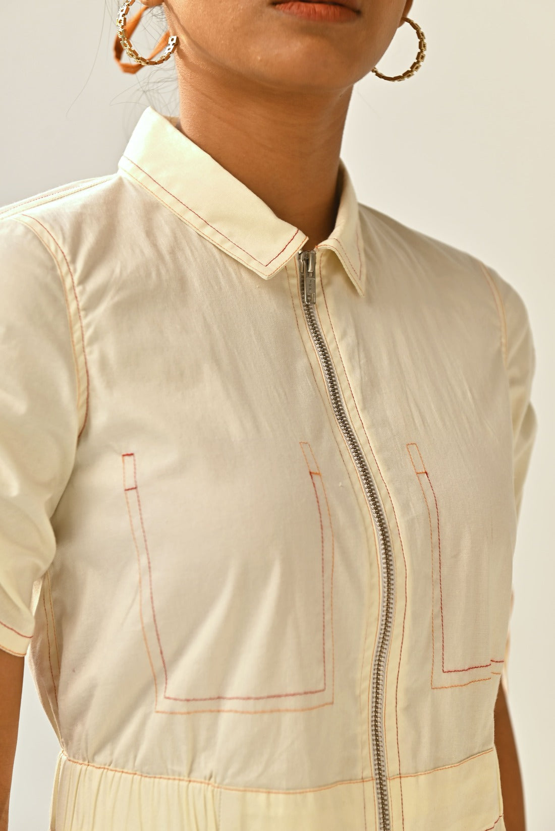 This Clover Romper is perfect for those summer days! It is made from a blend of cotton and lycra for maximum comfort and quality, and the butter colour and contrast stitches give an elegant but joyous look. An easy and fun choice for the summertime!