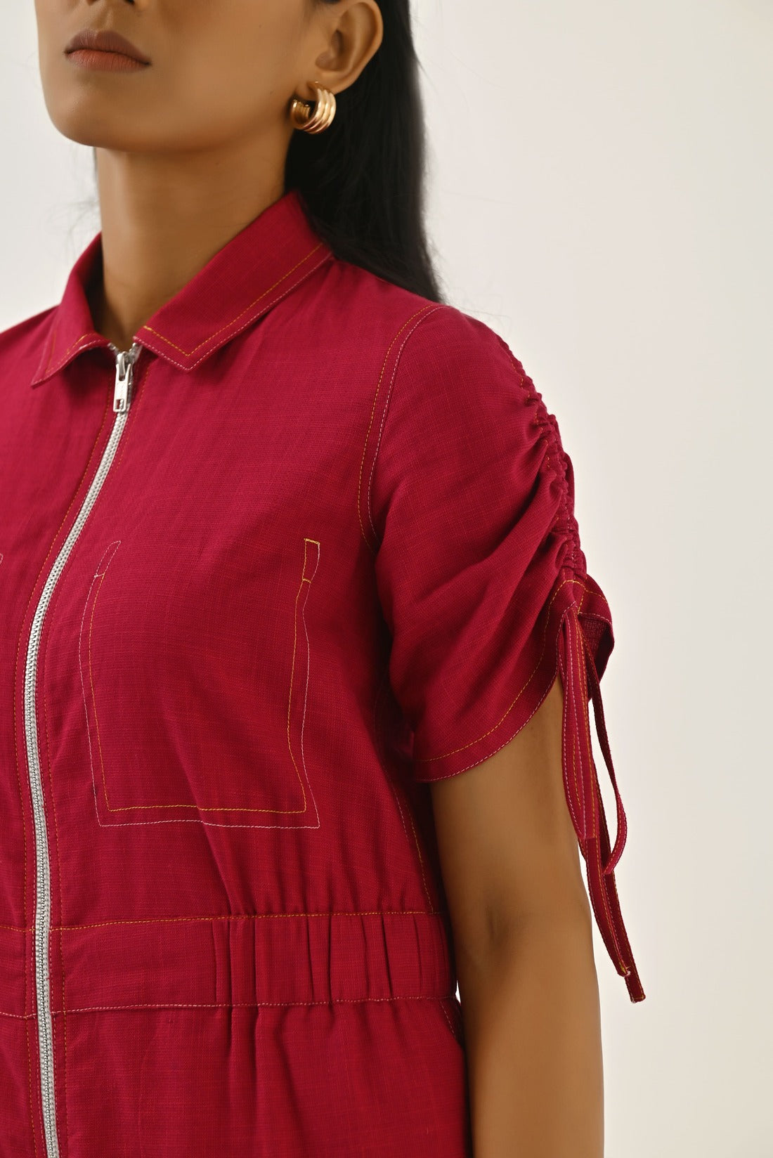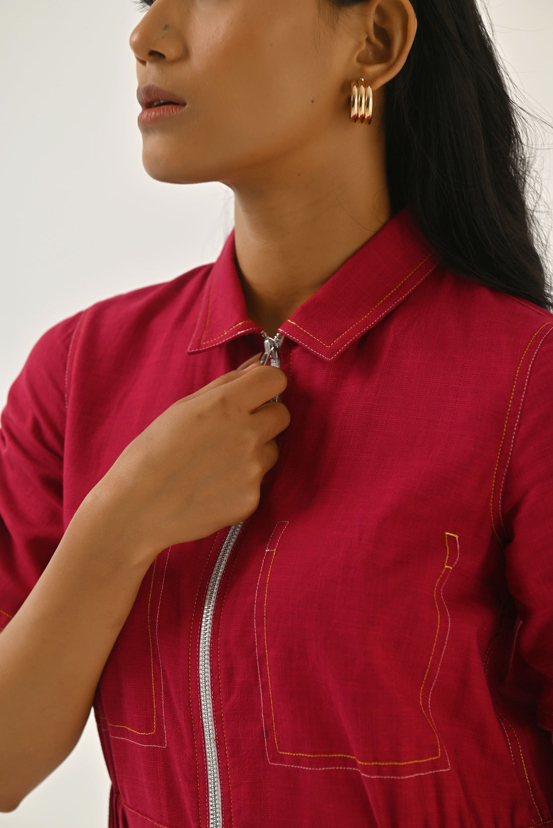 This Poppy Romper is a stylish and comfortable option to beat the summer heat. Crafted from lightweight cotton fabric, it features a fusia pink colour with a zipper closure, contrast stitch details, and draw strings that allow you to create the perfect fit. With its elegant design, the Poppy Romper is a great choice for any occasion.