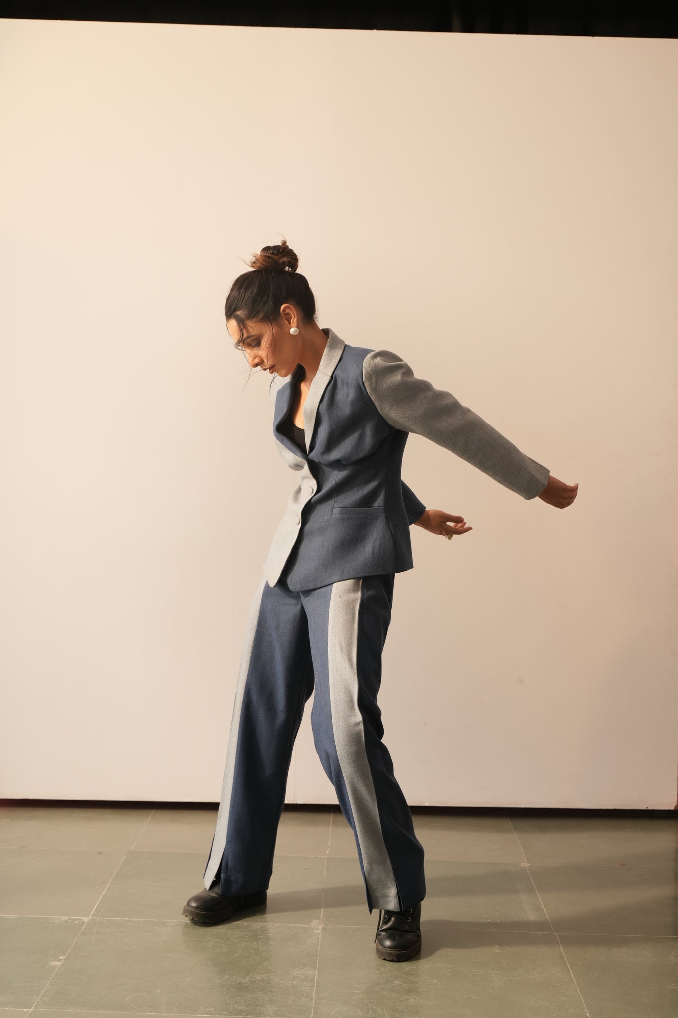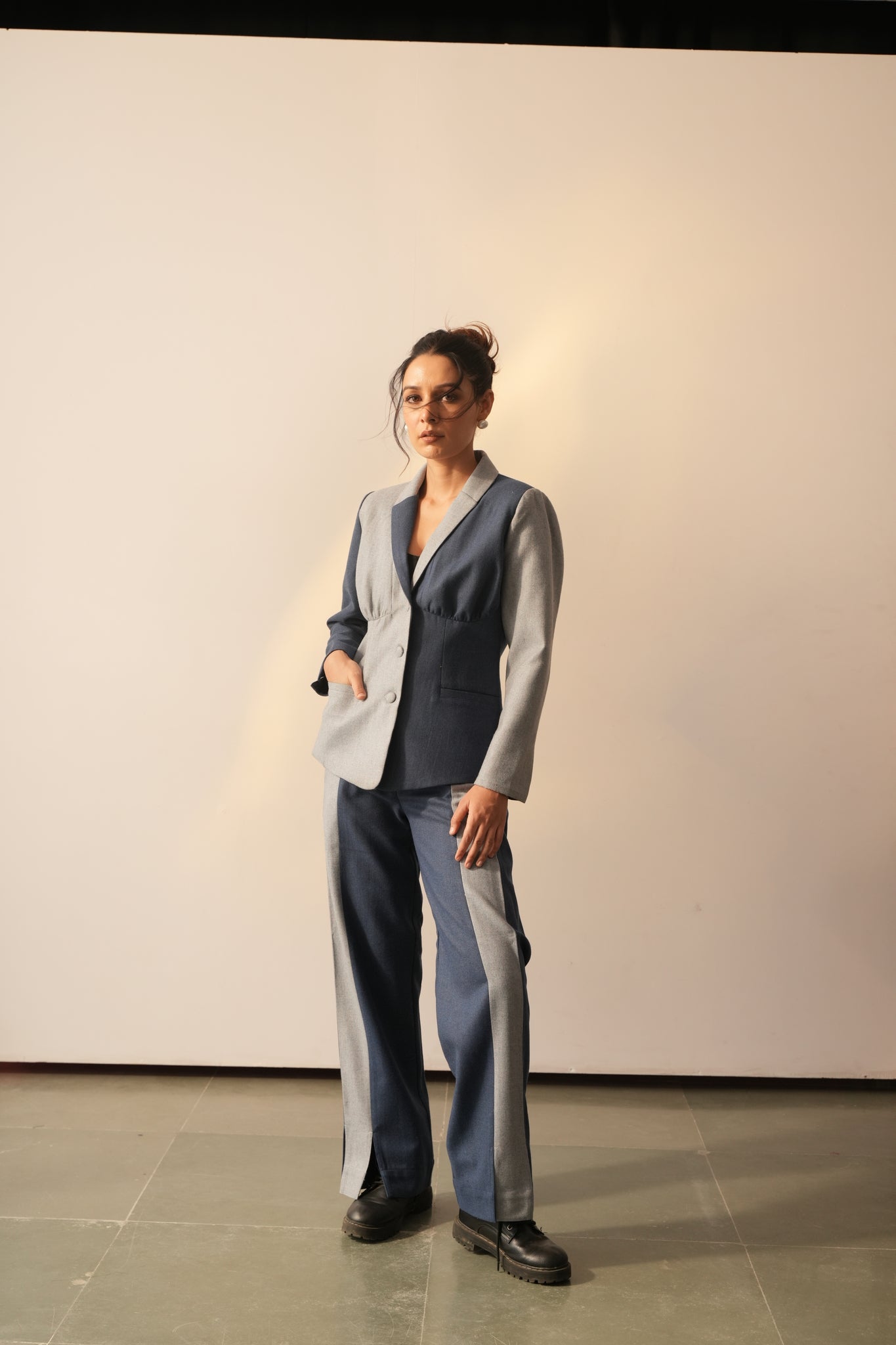 Our Jenny 2 Shade Blue cord set is designed with versatility and function in mind. It features two shades of blue fabric, interesting paneling, and a bust gather panel for a feminine silhouette fit. The straight leg trousers have a back elastic for comfort ( can be customised w/o back elastic). Dress it up or down for a formal or casual occasion.