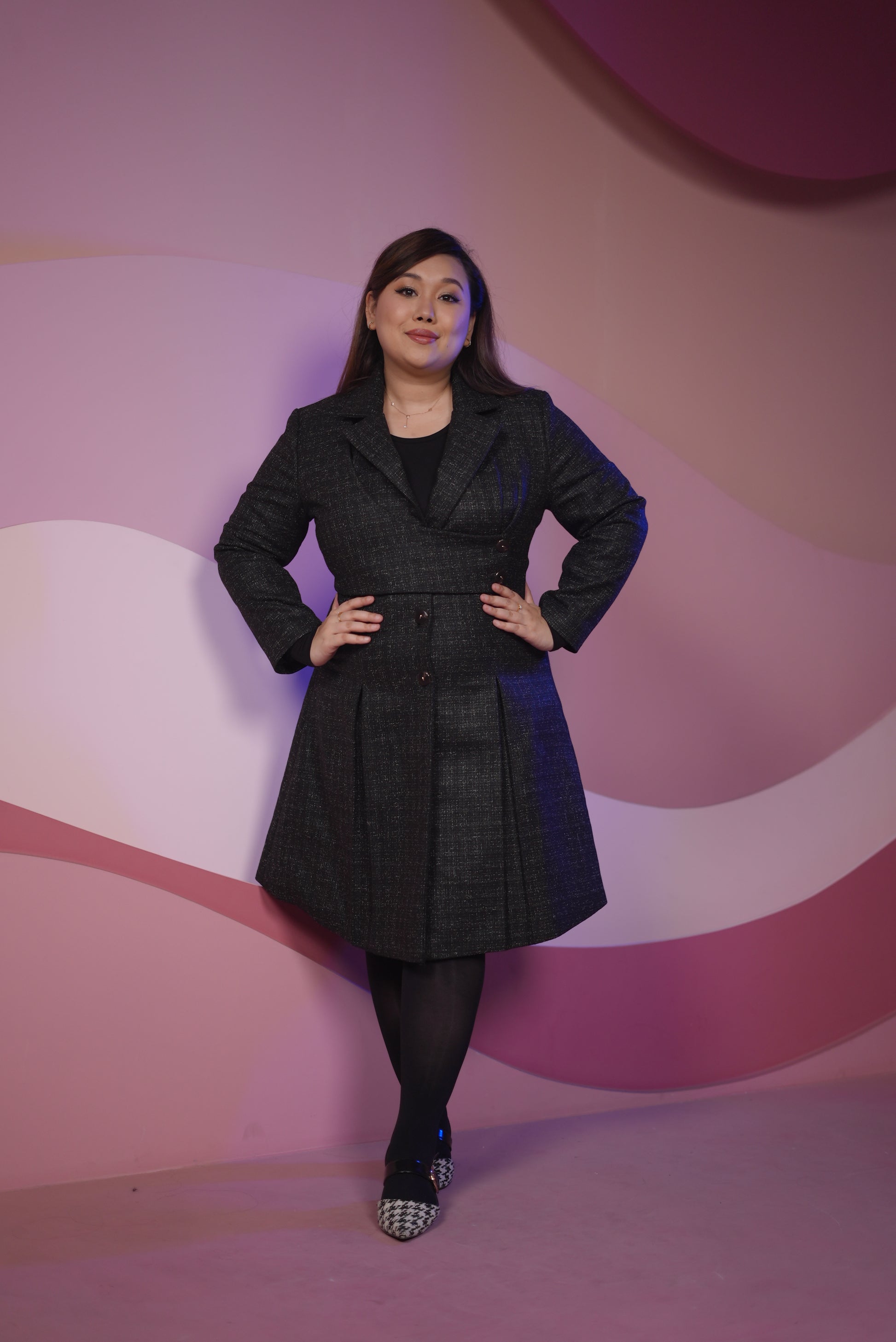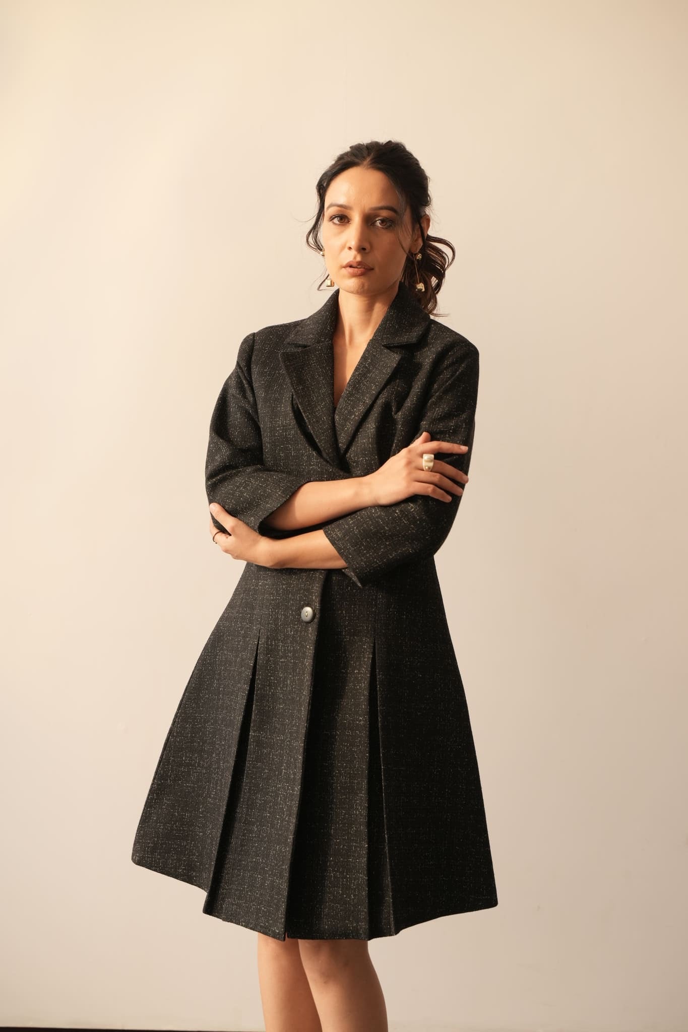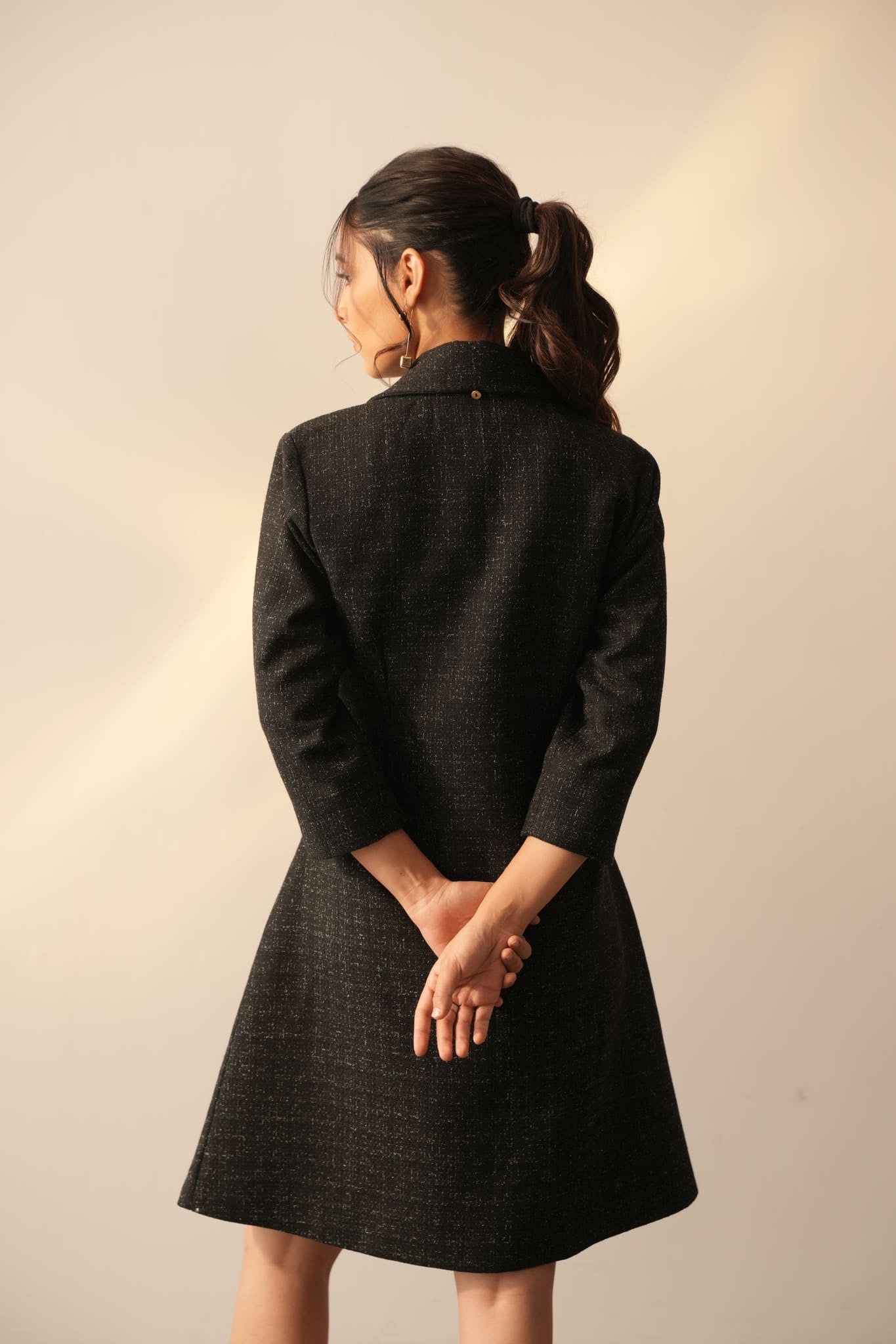 The Emily Black Warm Dress is a perfect blend of high fashion and femininity. Crafted meticulously, the dress features an elegant design with front overlapping panel, black gold buttons, and front box pleats. This chic and comfortable dress will take you from occasion to office wear with ease.