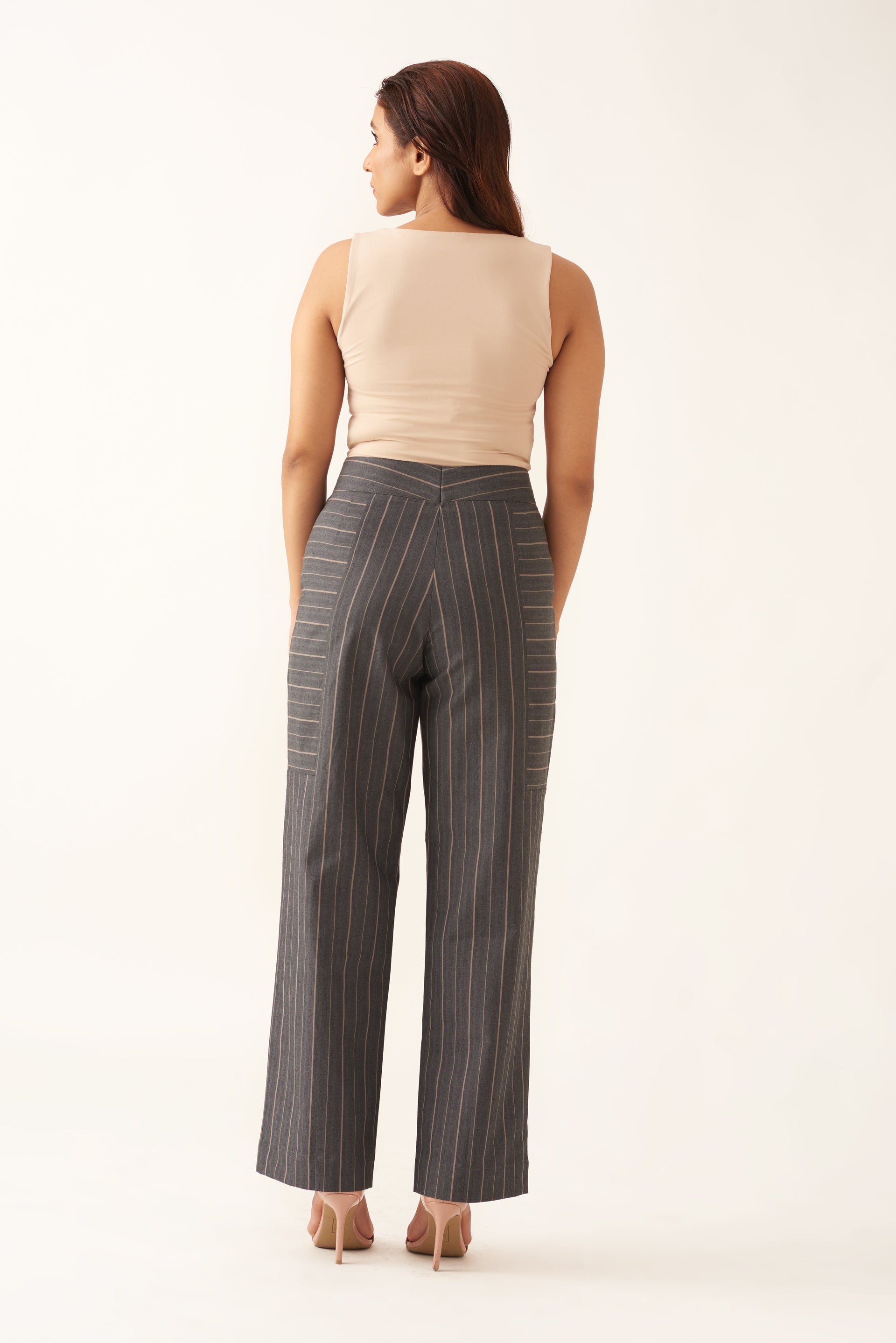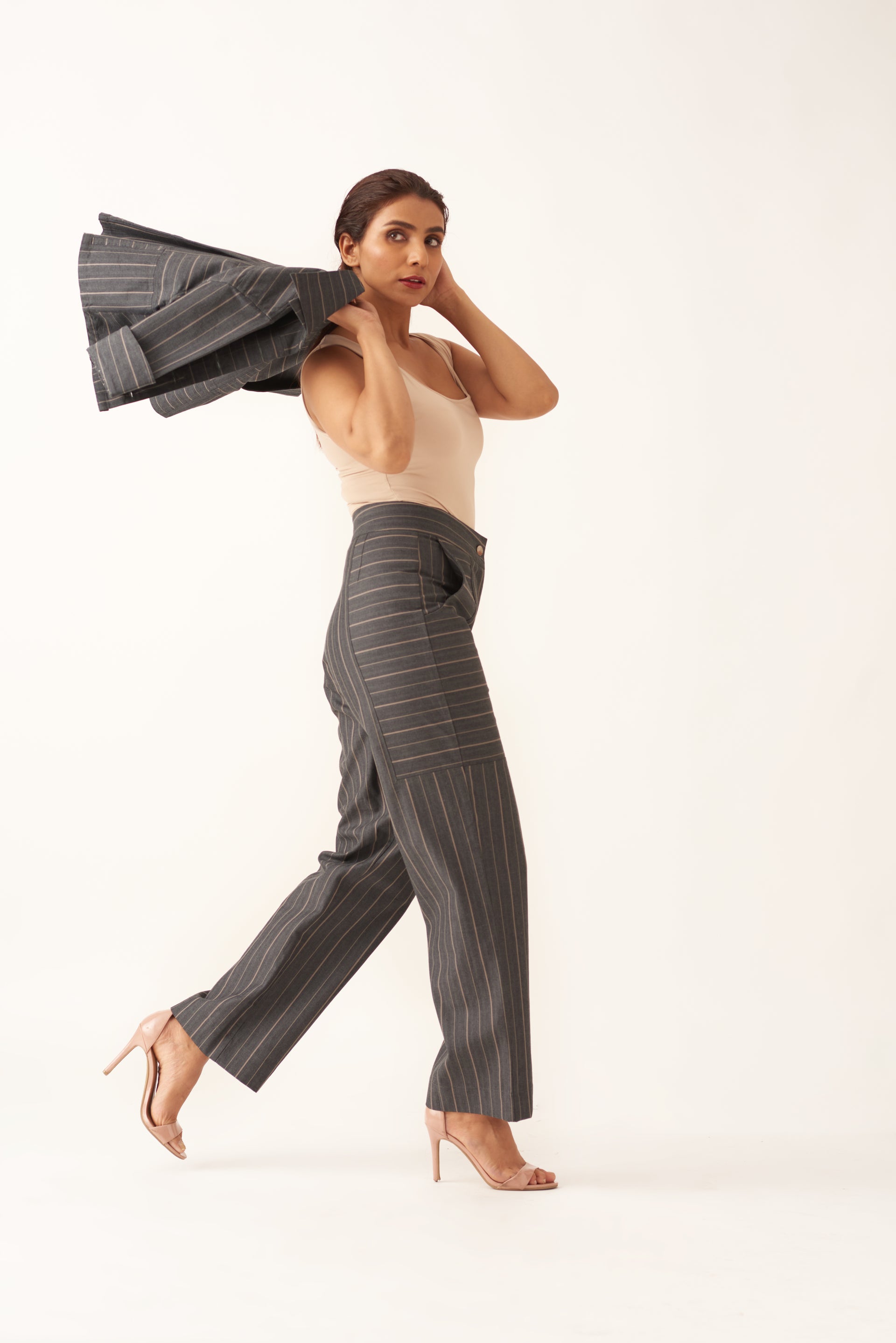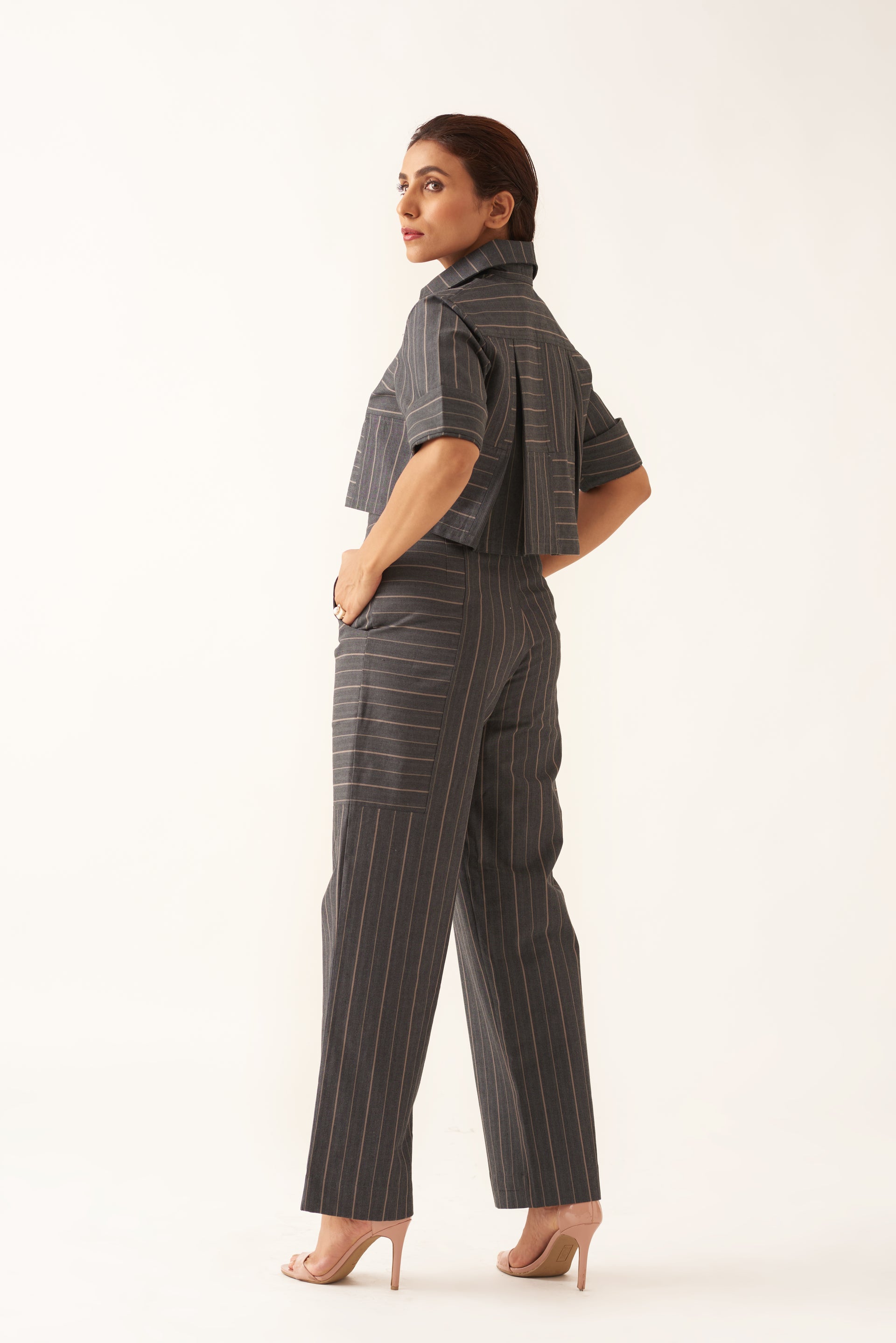 Zero-waste is a design technique that eliminates textile waste at the design stage. Leftover katrans from cutting were used as panels in the jacket, joined vertically and horizontally giving it a playful yet formal feel.