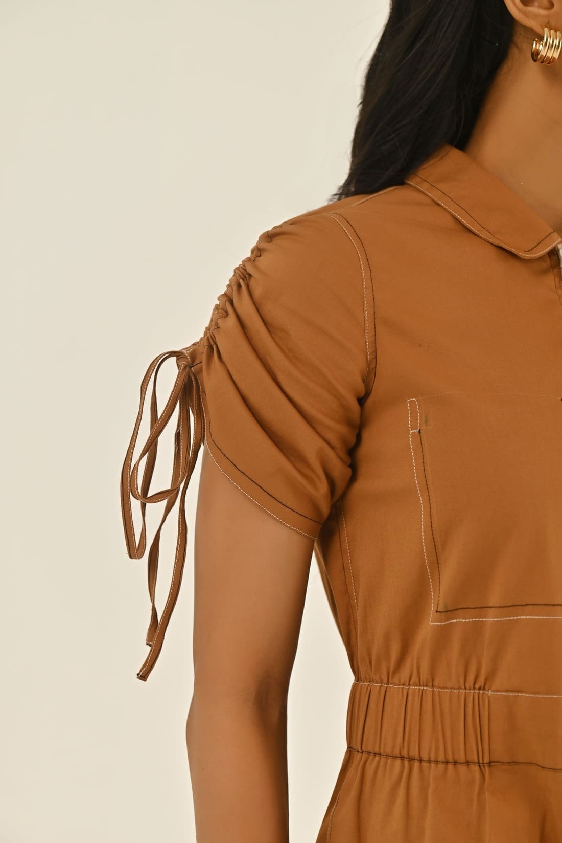 This Hazel Romper is perfect for those summer days! It is made from a blend of cotton and lycra for maximum comfort and quality, and the coffee colour and contrast stitches give an elegant but joyous look. An easy and fun choice for the summertime!