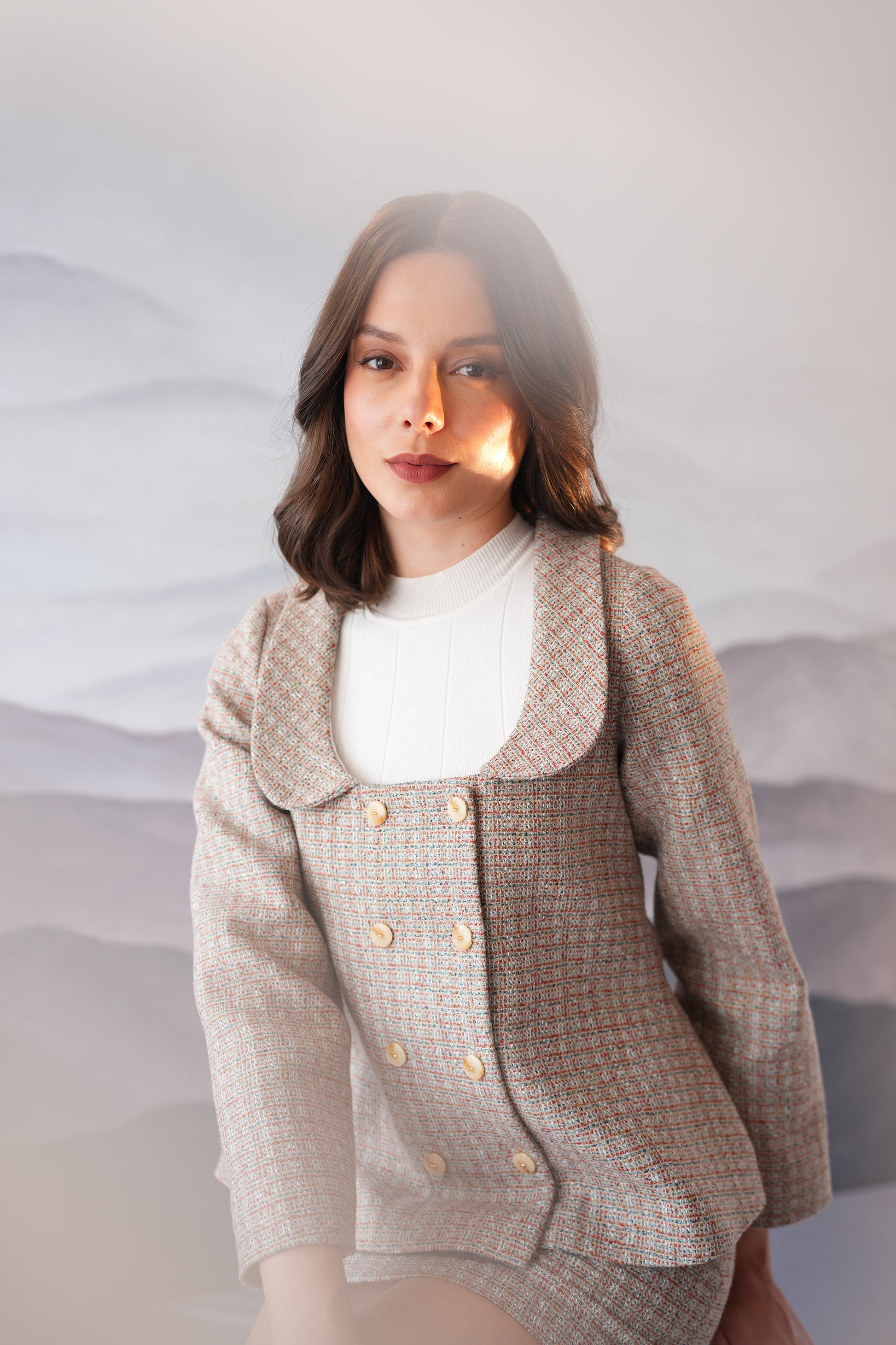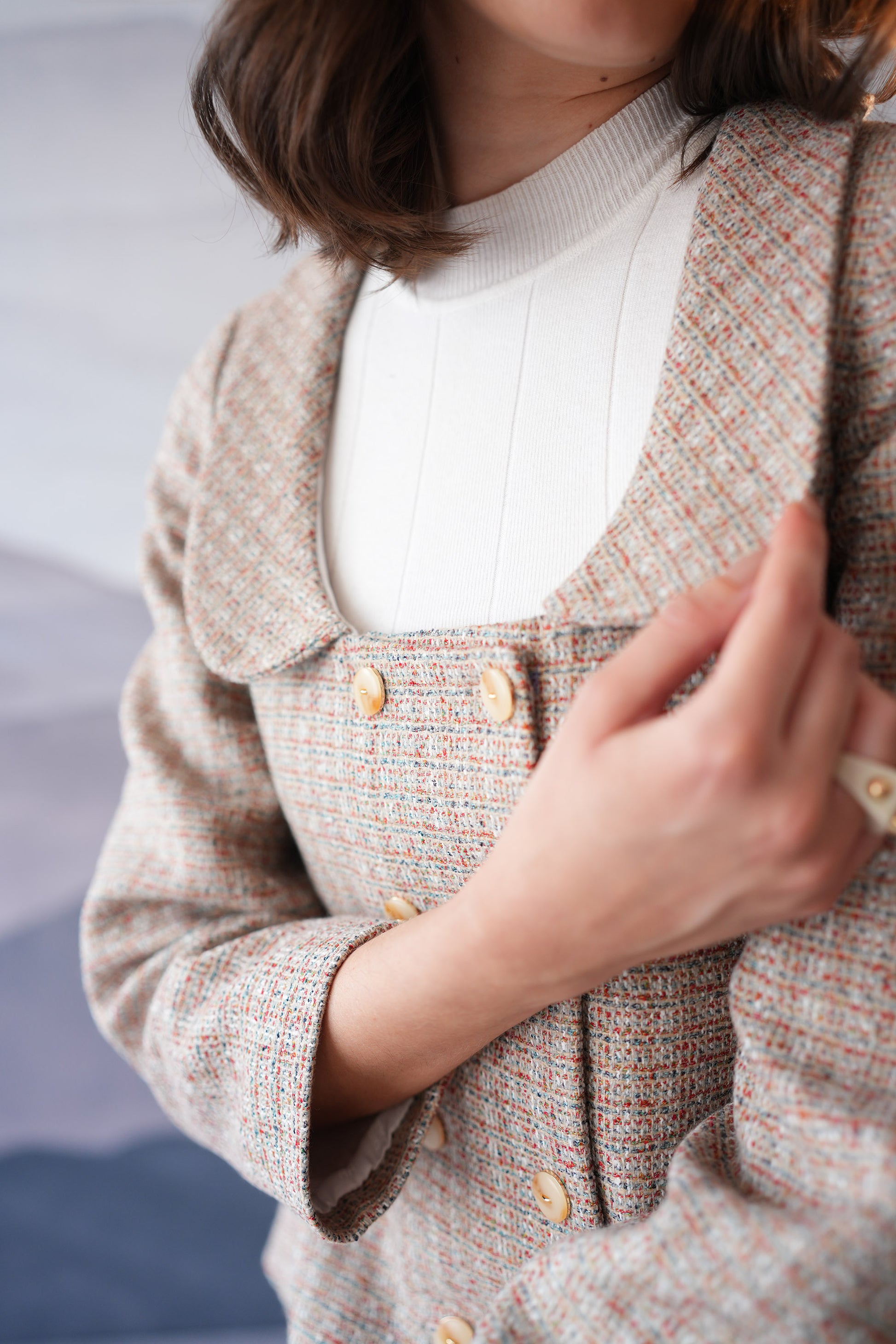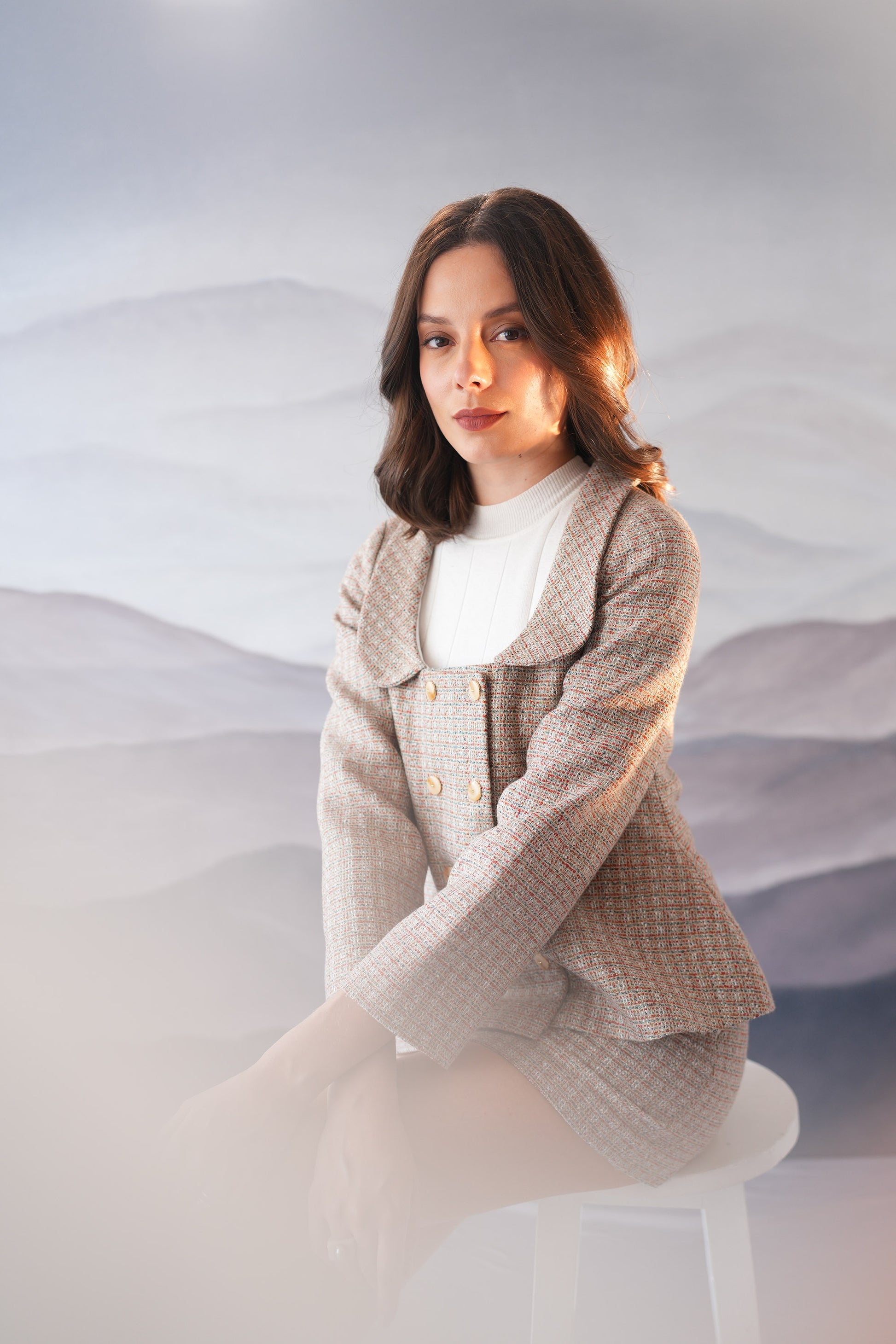 Indulge in luxury with the Jullie Flare Warm Cordset. The double breasted jacket features a square neck and round flat lapels, while multicolour yarns provide a cozy yet sophisticated touch. Complete the look with our warm skirt for a polished ensemble. Perfect for those who appreciate high-quality craftsmanship and a chic style.