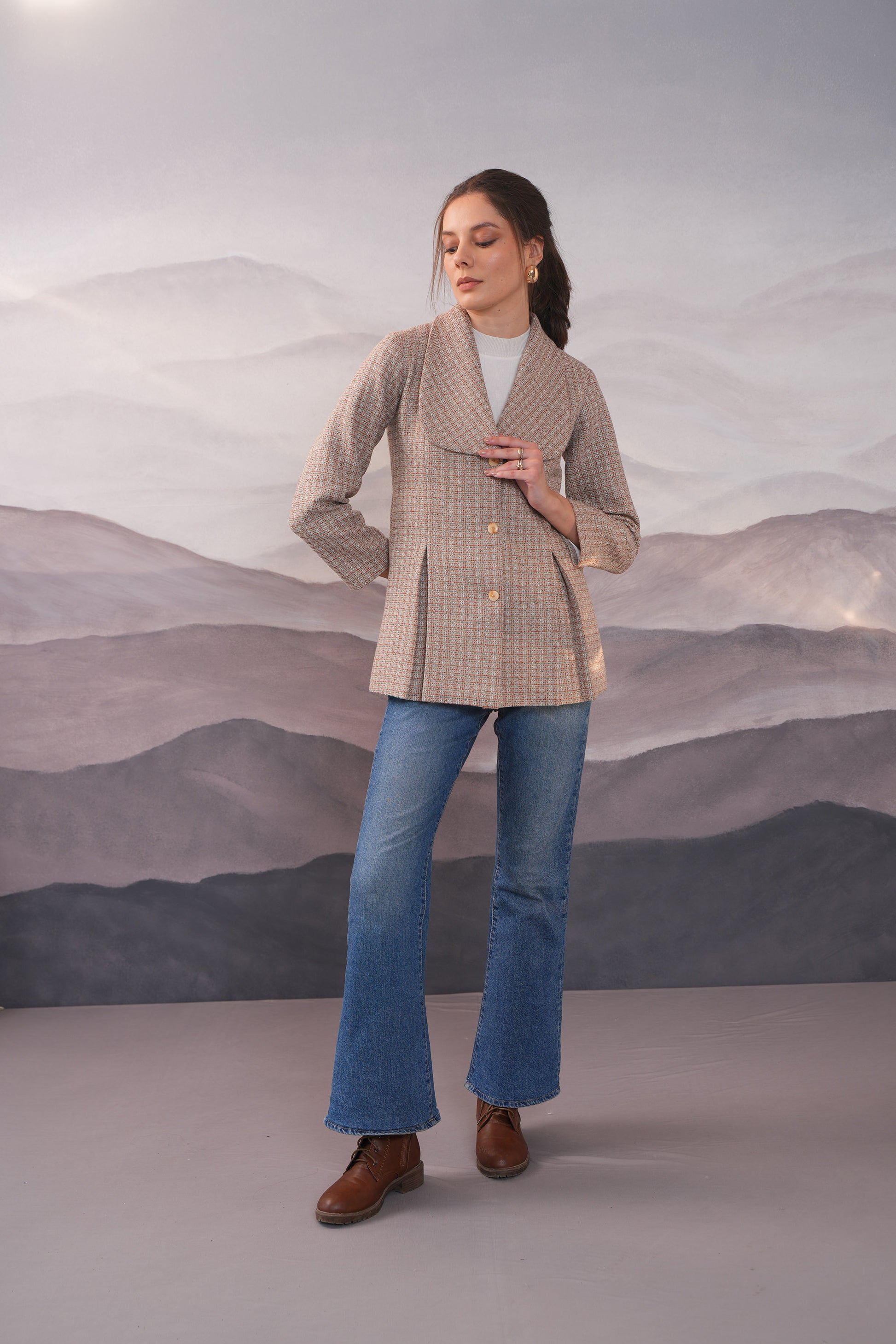 Crafted from luxurious mixed yarn wool, this Melange Box Pleat Wool Coat exudes class and elegance. The front box pleat and round big lapels create a feminine silhouette, while the beautiful buttons add a touch of sophistication. Stay warm and stylish all winter long with this must-have coat.