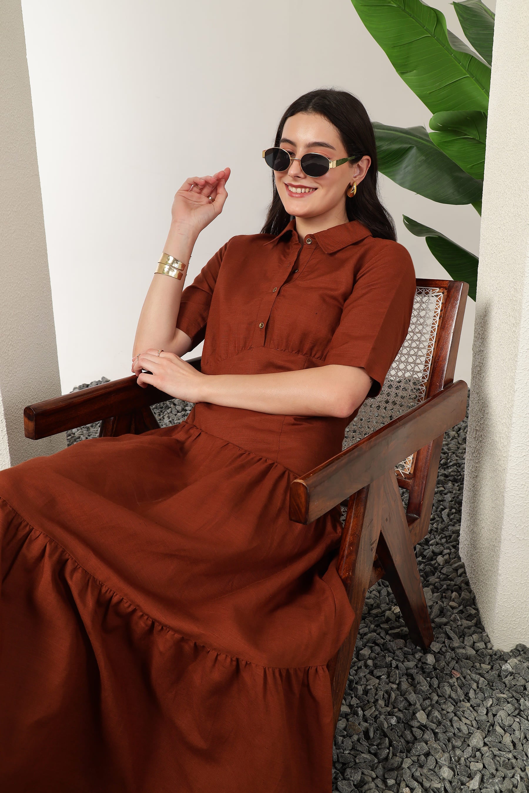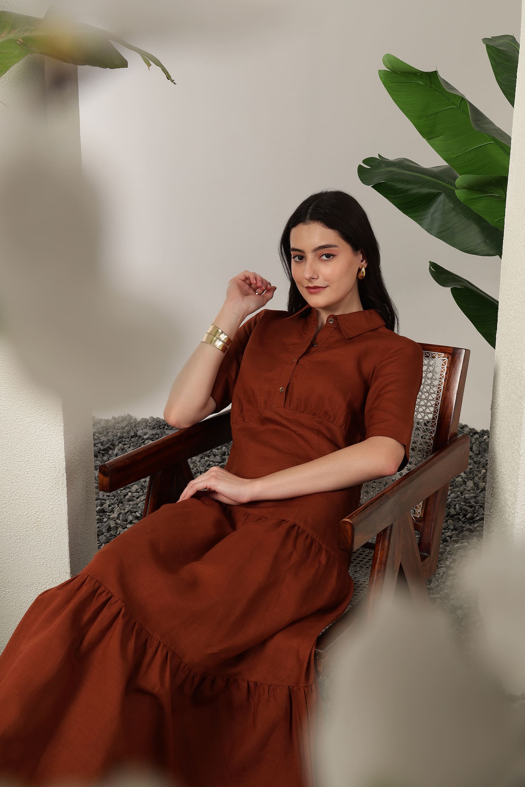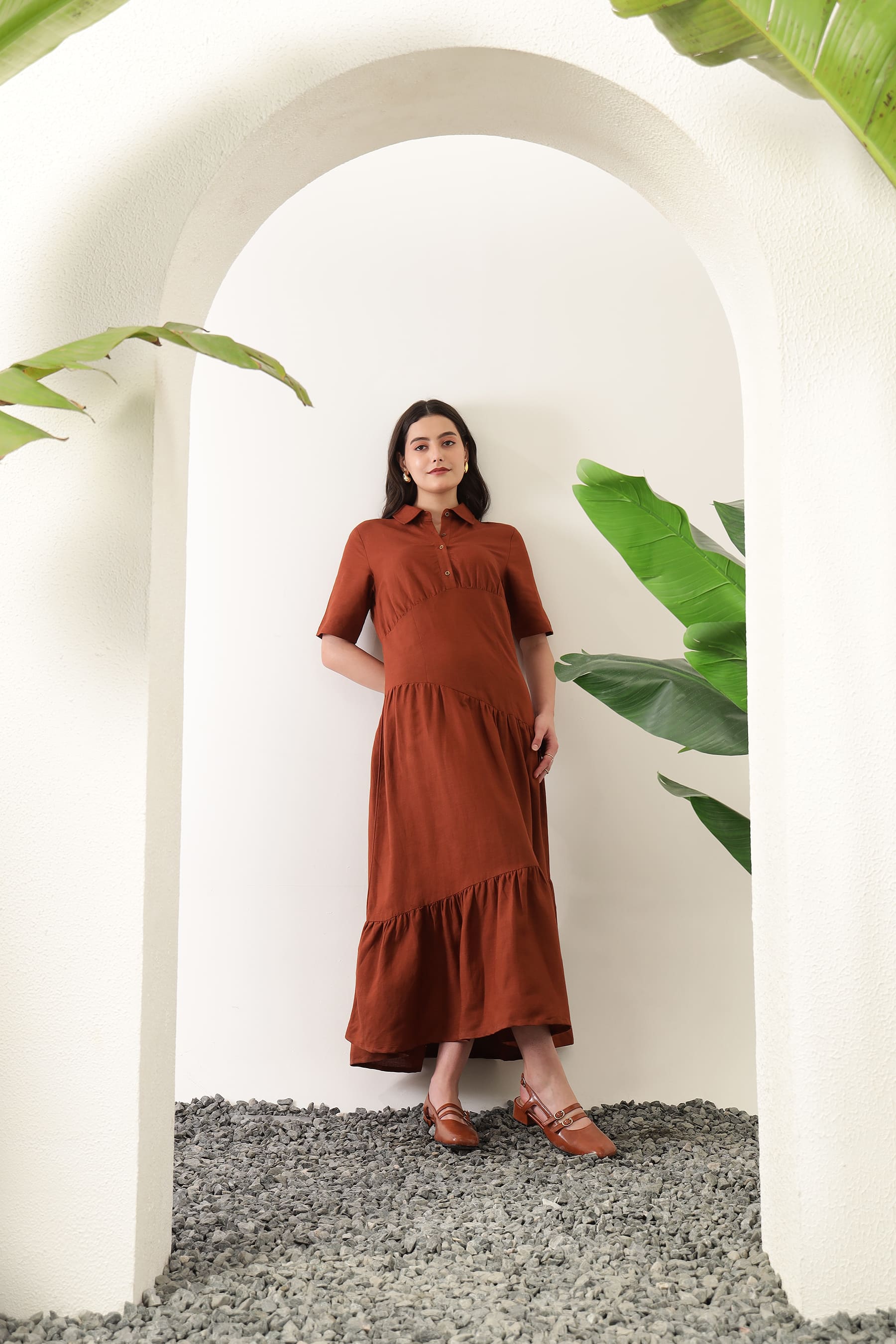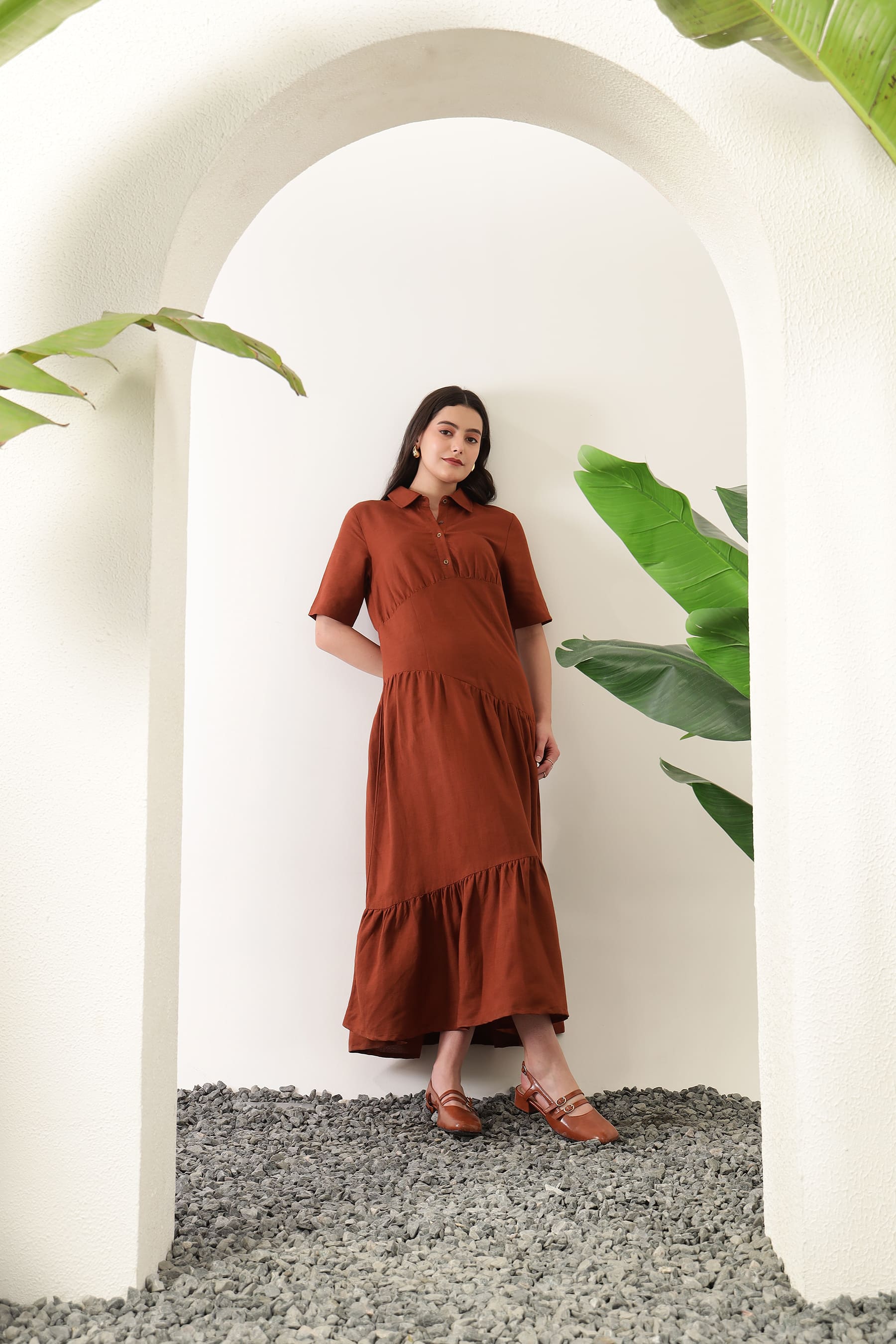 Elevate your wardrobe with the Nysa Dress in Brown. This sophisticated silhouette features elegant panelling and thoughtful gathering that flatters your figure. Delicate monotone lace details add refined texture without overwhelming. Versatile enough to transition seamlessly from daytime brunches to evening soirées, this chic piece is an essential companion for your vacation collection or everyday elegance.