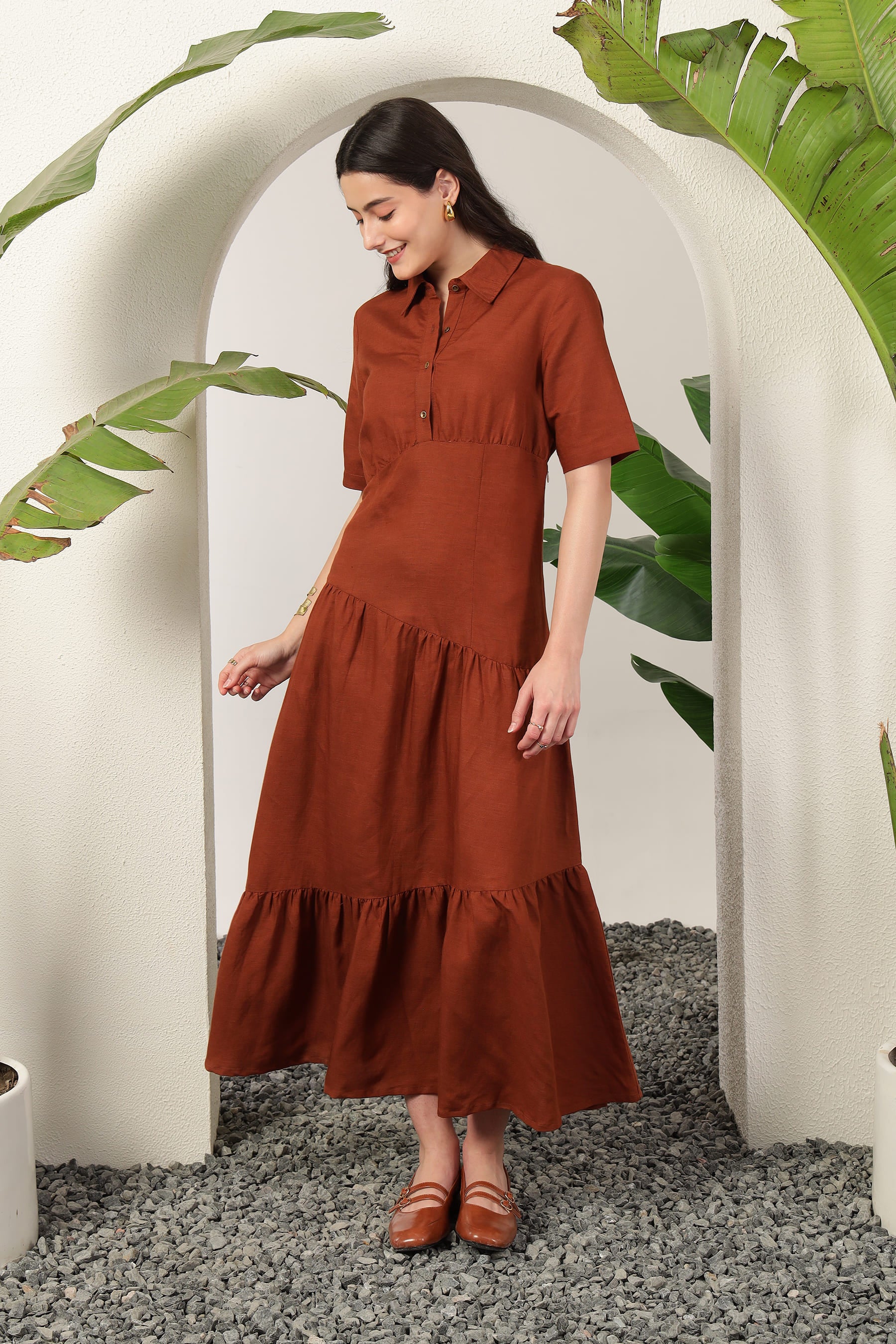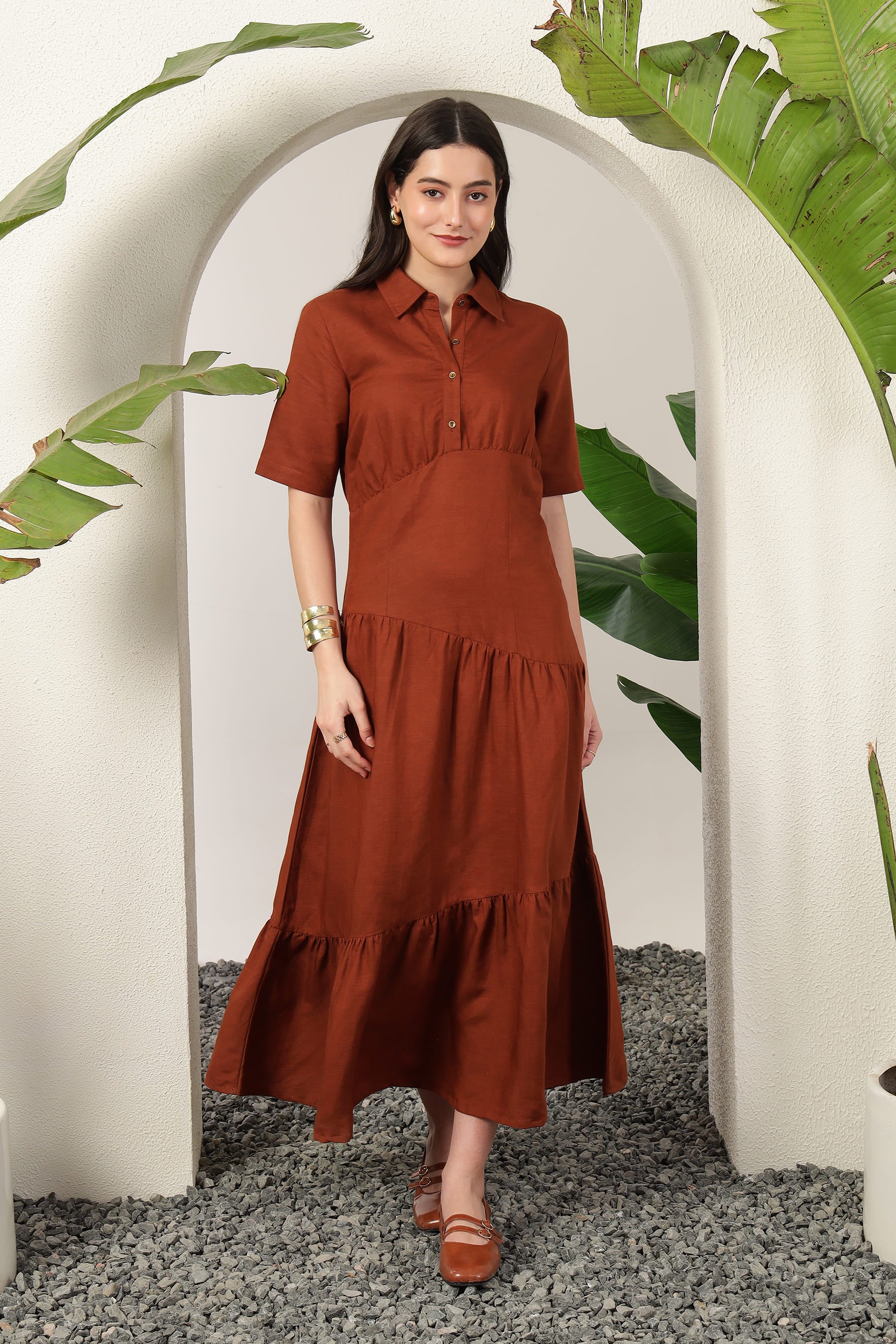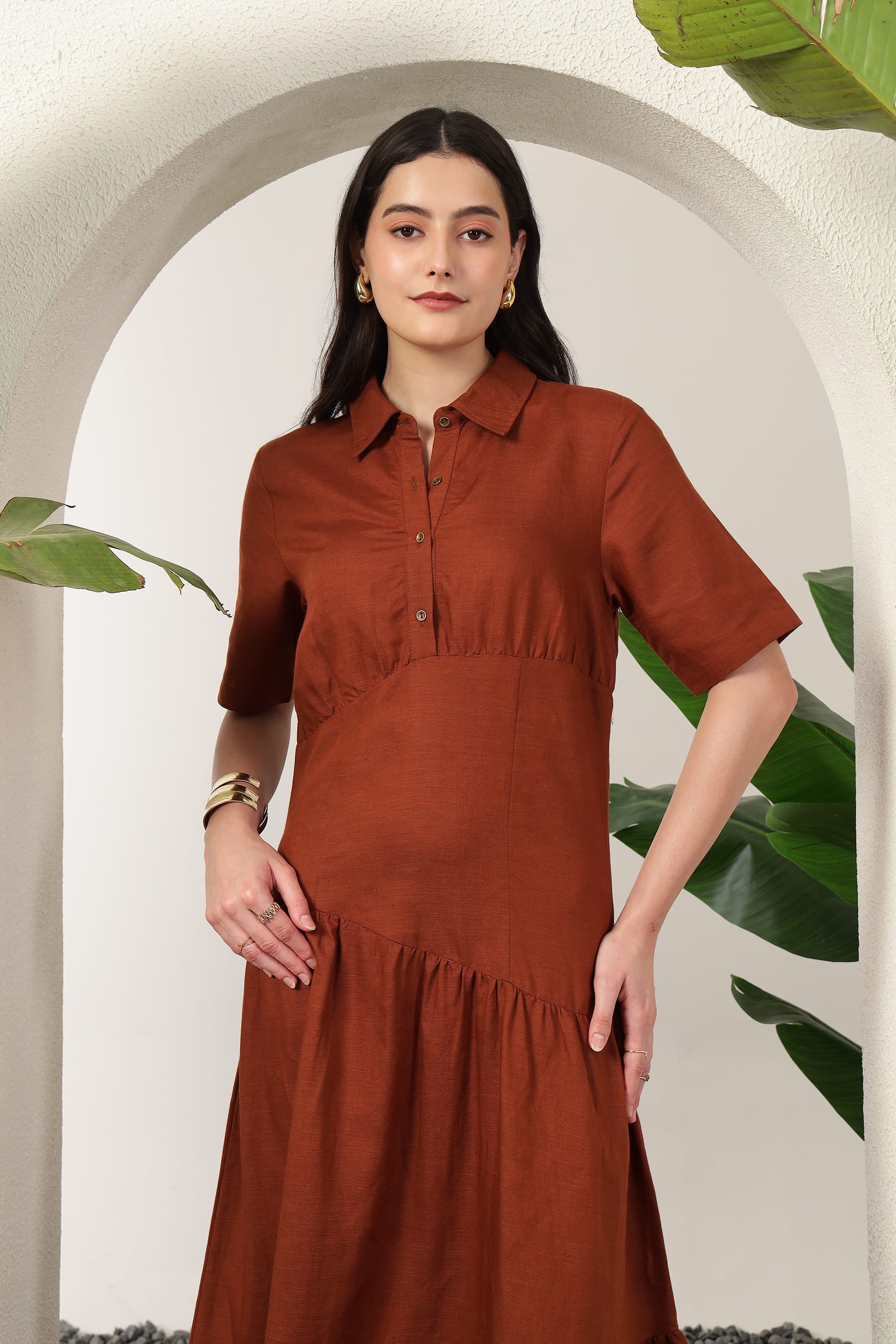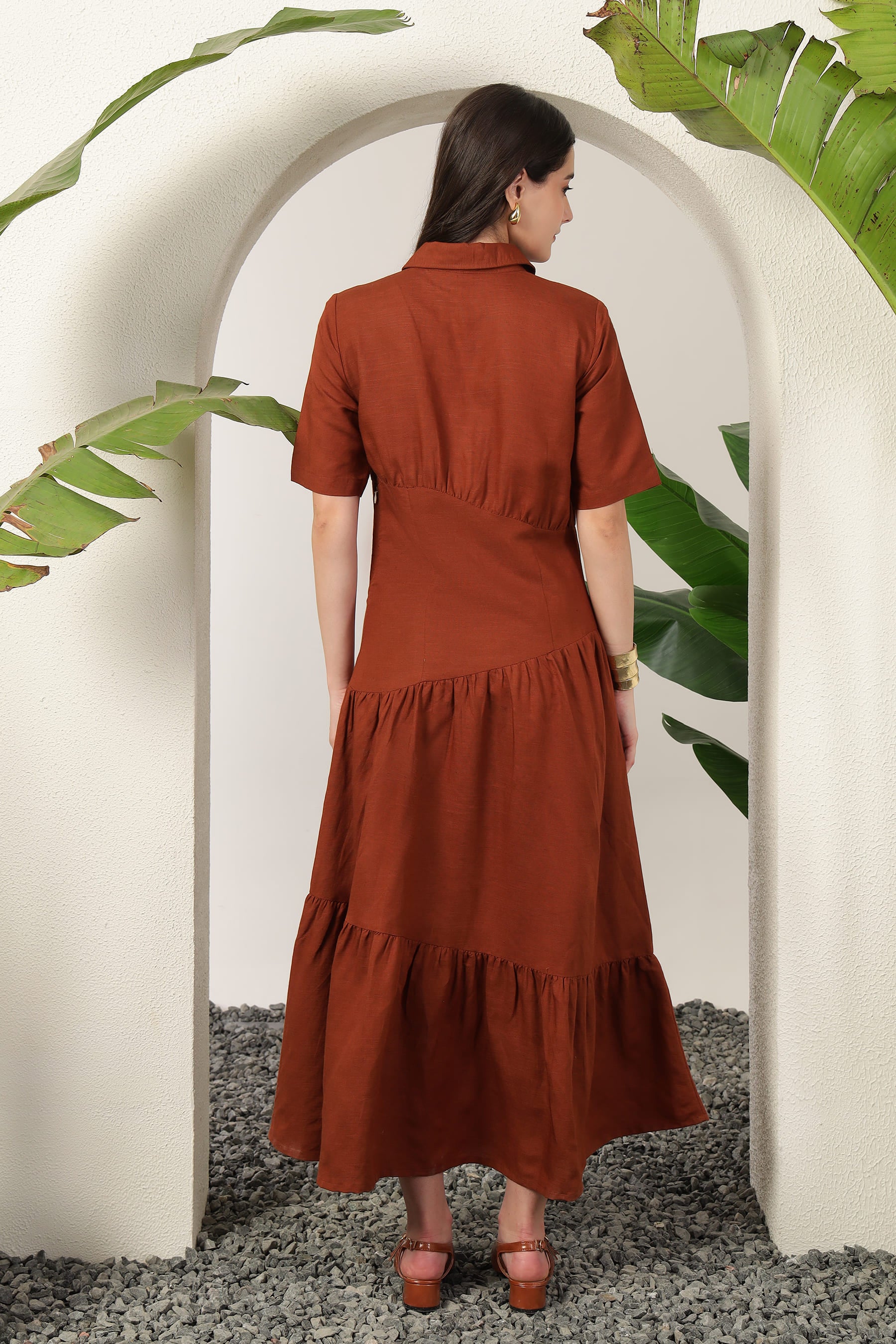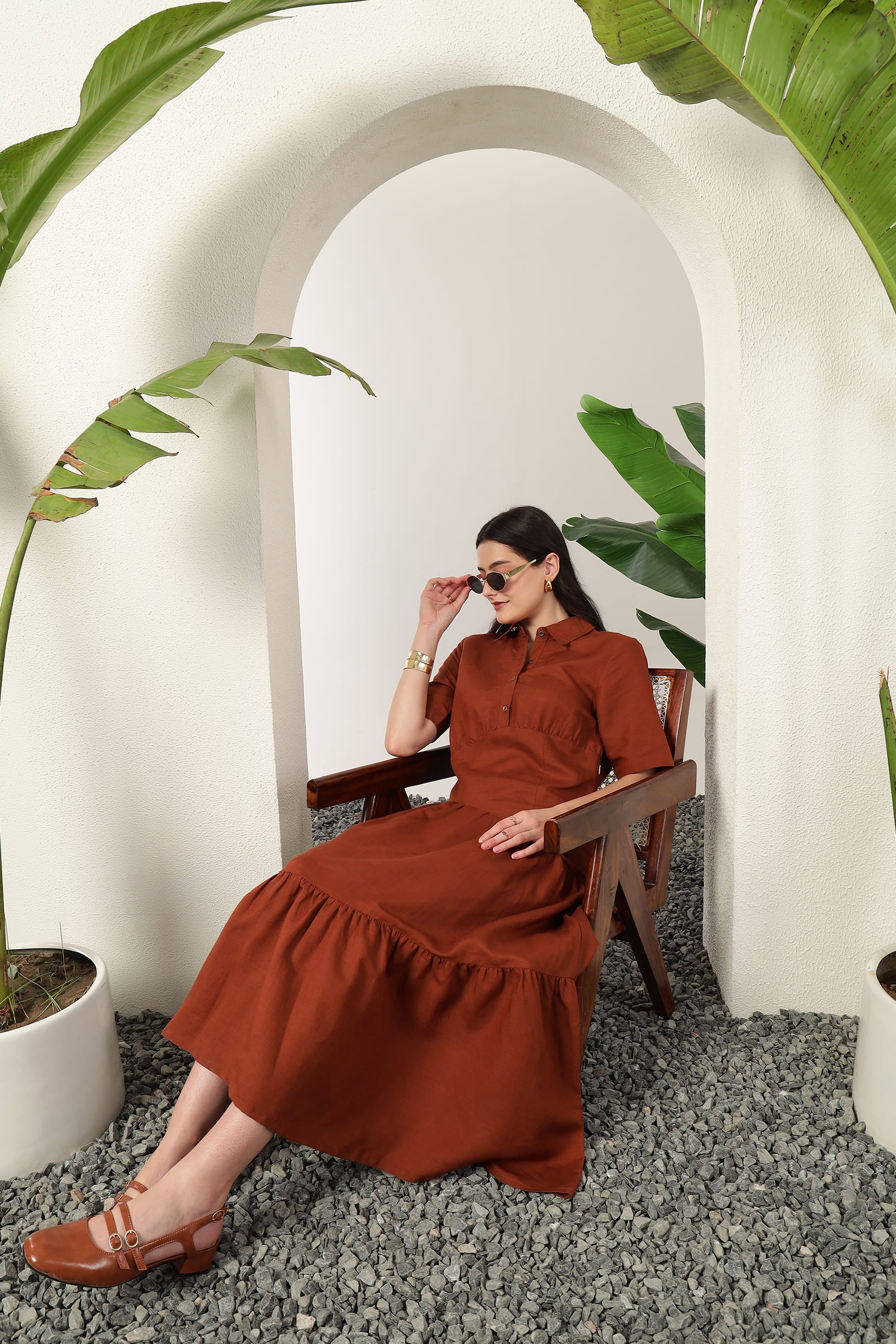 Elevate your wardrobe with the Nysa Dress in Brown. This sophisticated silhouette features elegant panelling and thoughtful gathering that flatters your figure. Delicate monotone lace details add refined texture without overwhelming. Versatile enough to transition seamlessly from daytime brunches to evening soirées, this chic piece is an essential companion for your vacation collection or everyday elegance.